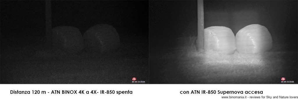 È una domanda purtroppo molto generica, poiché intervengono molte variabili che potrebbero non essere evidenziate con una osservazione serale fugace. In primis, come avrete compreso, un visore notturno beneficia della presenza di luce ambientale. Per tale motivo potreste notare delle enormi differenze testando il vostro nuovo illuminatore IR nel giardino di casa, in presenza di luci lampioni e magari della Luna piena e poi, dopo qualche giorno, utilizzarlo in montagna in assenza di inquinamento luminoso e con il novilunio. Dovrete anche considerare il soggetto da osservare, un conto sarà la percezione di un cervo a centocinquanta metri, un conto quella di una lepre. Per questo motivo ho testato questo illuminatore per due mesi, proprio per dare un giudizio concreto sulle sue reali prestazioni