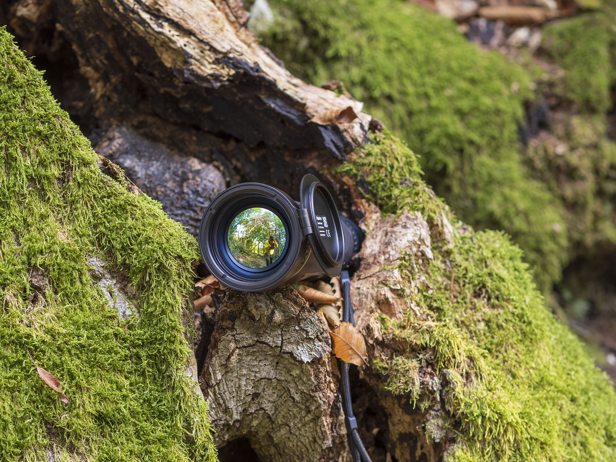 Il peso, nonostante l’obiettivo da 50 mm F/0.9, resta contenuto: 537 grammi con batteria, cinghia e coprilente montati. Le dimensioni (213,1 × 73 × 83,4 mm) non compromettono la maneggevolezza: il monocolo resta compatto e facilmente trasportabile in uno zaino fotografico o nella tasca di una giacca tecnica.