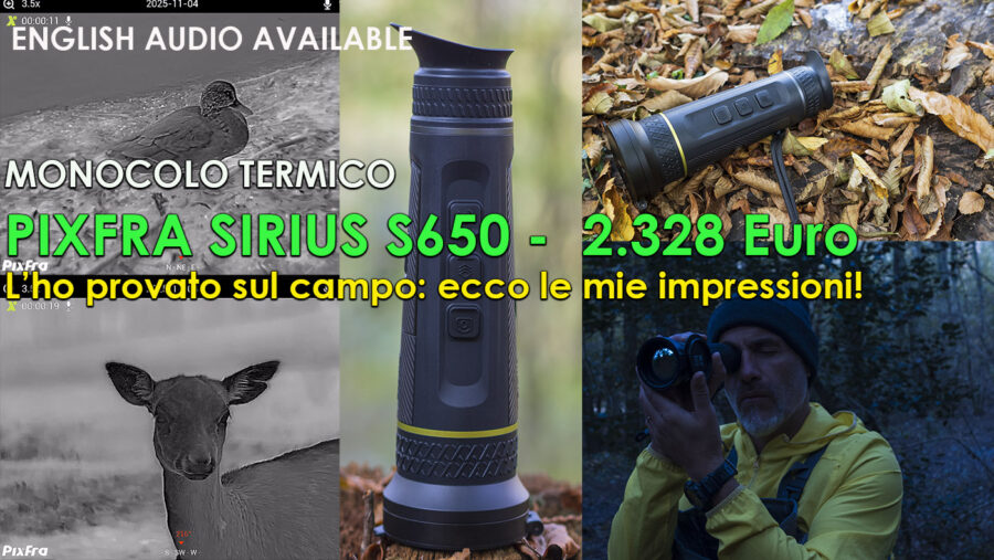 Ho accolto con grande interesse la proposta di Andrea Ambrosio della nota armeria Paganinidi testare uno dei nuovi modelli di punta della serie SIRIUS di Pixfra. Dopo l’esperienza positiva con la gamma ARC, ho voluto verificare le prestazioni di un monocolo termico dotato di sensore di fascia superiore e ottica più ampia, progettato per chi desidera prestazioni professionali anche nelle condizioni più difficili. Il protagonista di questa prova è il Pixfra SIRIUS S650, un monocolo termico equipaggiato con sensore VOx non raffreddato da 640×512 pixel, pixel pitch da 12 μm e obiettivo da 50 mm F0.9, che promette una combinazione eccellente tra dettaglio, luminosità e capacità di rilevamento a lunga distanza.